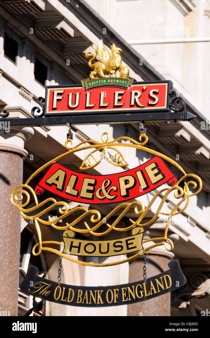 Close Up Of Fullers Brewery Ale Pie Sign At The Old Bank Of England Listed Building Public House At 194 Fleet Street City Of London England Uk Stock Photo Alamy